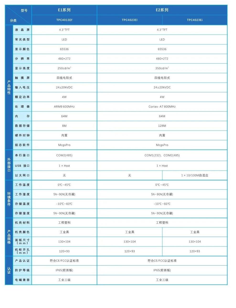 昆仑技创_选型手册_2022版_E系列(4.3寸)